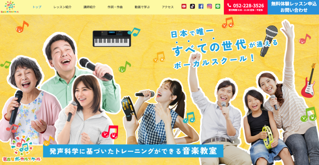 名古屋ボーカルスクール地域に根差した教室。話し方改善やシニアレッスンも人気。1回7,000円〜新栄駅から徒歩5分無料